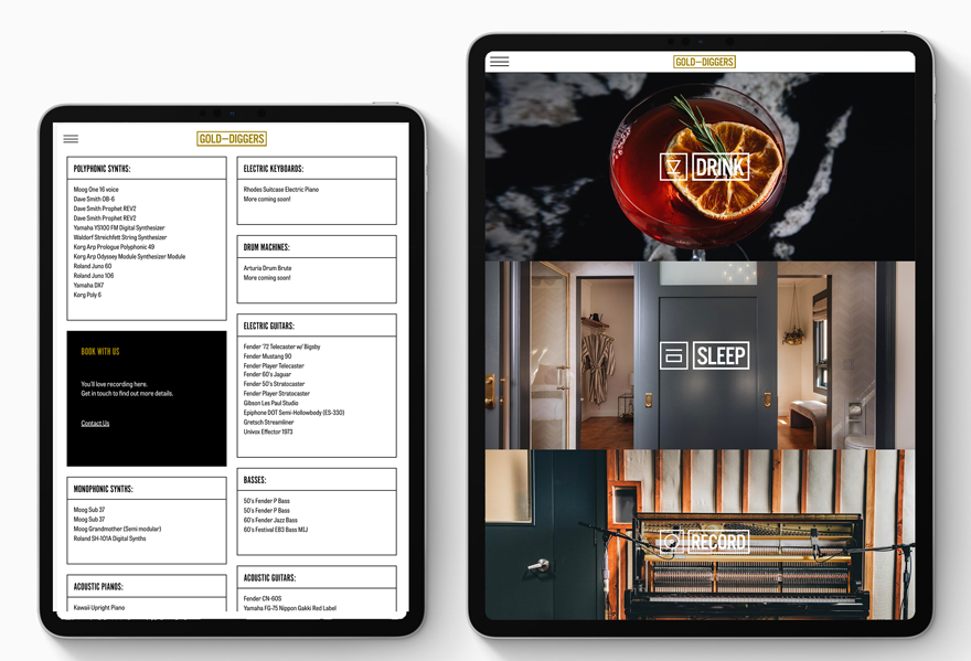 Web development for hotel, bar, and recording studio - Gold-Diggers.